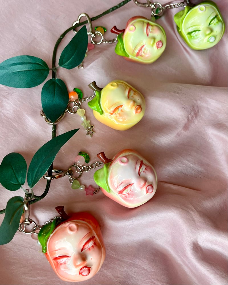 *Each Forbidden Fruit charm is casted from my original clay sculpture using Smoothcast300 pastic, hand-painted with acrylic, and sealed with UV resin for protection and further durability.*